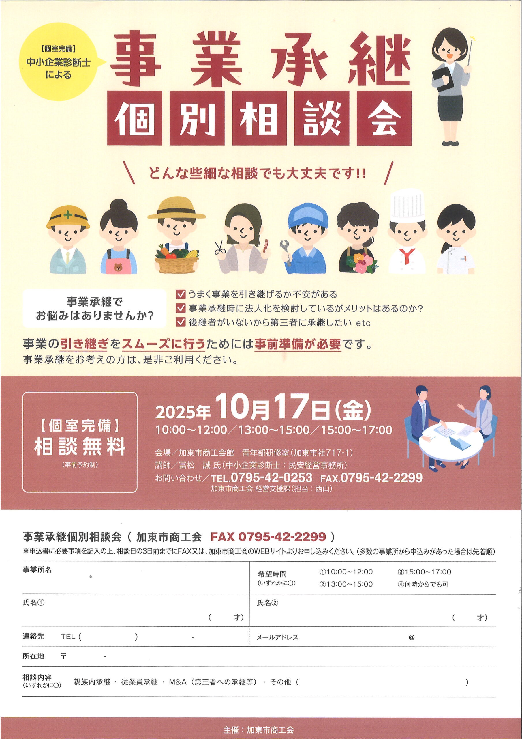 お申込み:下記の案内チラシの申込欄に必要事項をご記入の上、相談日の3日前までにFAX又は、下記の申込フォームよりお申し込みください。 (多数の事業所様から申込みがあった場合は先着順)